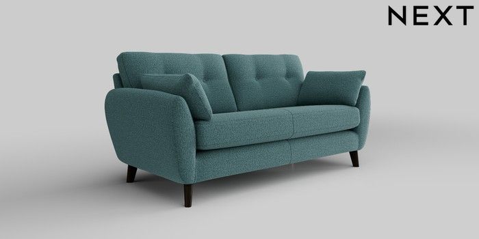 6.12.13 Buy Wilson Buttoned Back 3 Seater Small Sofa Chunky Chenille Mid Teal Green Retro Tapered - Dark from the Next UK online shop Click here to use our accessible website