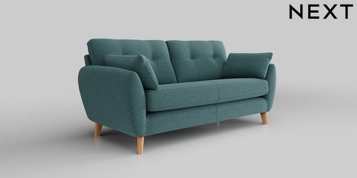 6.12.13 Buy Wilson Buttoned Back 3 Seater Small Sofa Chunky Chenille Mid Teal Green Retro Tapered - Light from the Next UK online shop Click here to use our accessible website