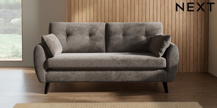7.2.10 Buy Wilson Buttoned Back 3 Seater Small Sofa Chunky Chenille Mink Brown Retro Tapered - Dark from the Next UK online shop Click here to use our accessible website