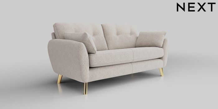 6.12.13 Buy Wilson Buttoned Back 3 Seater Small Sofa Chunky Chenille Oyster Metal Tapered - Gold from the Next UK online shop Click here to use our accessible website