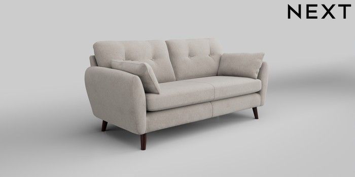 6.12.1 Buy Wilson Buttoned Back 3 Seater Small Sofa Chunky Chenille Oyster Retro Tapered - Dark Brown from the Next UK online shop Click here to use our accessible website