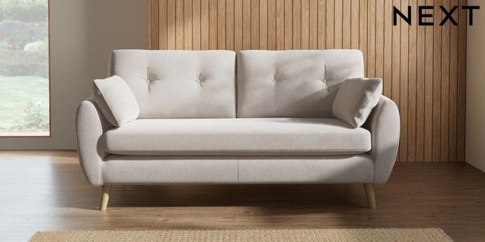 7.2.10 Buy Wilson Buttoned Back 3 Seater Small Sofa Chunky Chenille Oyster Retro Tapered - Light from the Next UK online shop Click here to use our accessible website