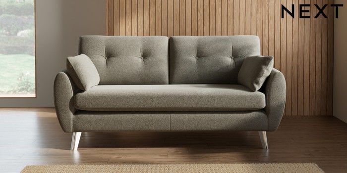 7.3.1 Buy Wilson Buttoned Back 3 Seater Small Sofa Chunky Marl Light Olive Green Metal Tapered - Chrome from the Next UK online shop Click here to use our accessible website