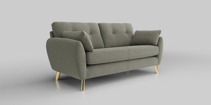 6.12.1 Buy Wilson Buttoned Back 3 Seater Small Sofa Chunky Marl Light Olive Green Metal Tapered - Gold from the Next UK online shop Click here to use our accessible website