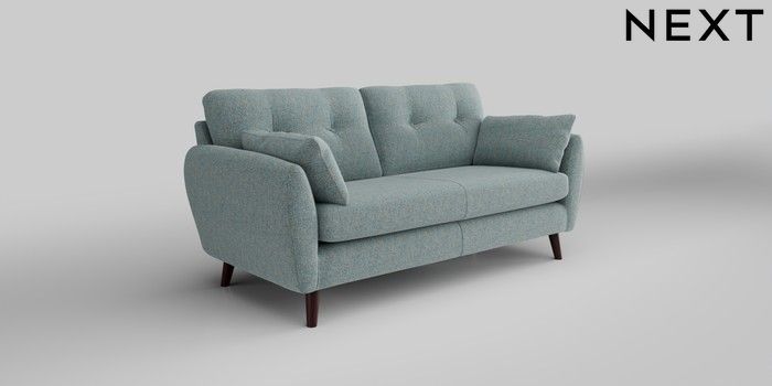 6.12.1 Buy Wilson Buttoned Back 3 Seater Small Sofa Chunky Marl Mid Blue Retro Tapered - Dark Brown from the Next UK online shop Click here to use our accessible website