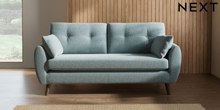 7.2.10 Buy Wilson Buttoned Back 3 Seater Small Sofa Chunky Marl Mid Blue Retro Tapered - Mid from the Next UK online shop Click here to use our accessible website