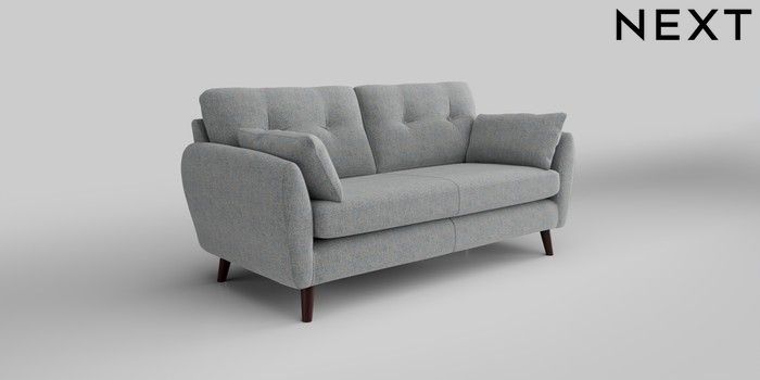6.12.1 Buy Wilson Buttoned Back 3 Seater Small Sofa Chunky Marl Mid Grey Retro Tapered - Dark Brown from the Next UK online shop Click here to use our accessible website