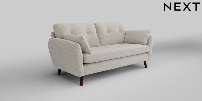 6.12.1 Buy Wilson Buttoned Back 3 Seater Small Sofa Chunky Marl Oyster Retro Tapered - Dark Brown from the Next UK online shop Click here to use our accessible website