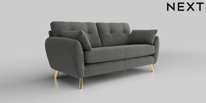 6.12.1 Buy Wilson Buttoned Back 3 Seater Small Sofa Chunky Texture Dark Grey Metal Tapered - Gold from the Next UK online shop Click here to use our accessible website
