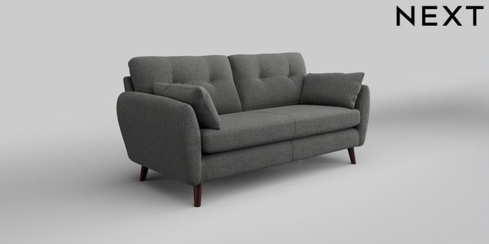 6.12.1 Buy Wilson Buttoned Back 3 Seater Small Sofa Chunky Texture Dark Grey Retro Tapered - Dark Brown from the Next UK online shop Click here to use our accessible website