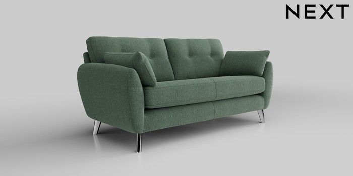 6.12.1 Buy Wilson Buttoned Back 3 Seater Small Sofa Chunky Texture Mid Forest Green Metal Tapered - Chrome from the Next UK online shop Click here to use our accessible website