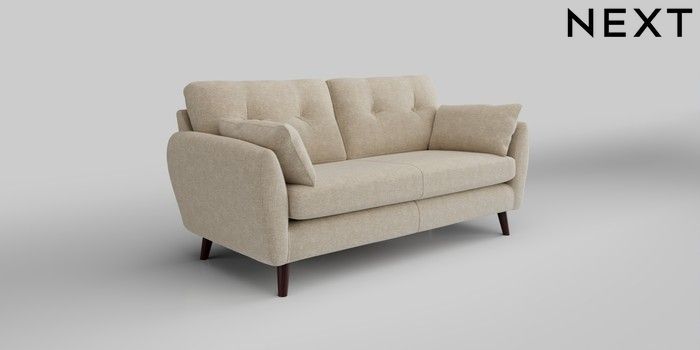 6.12.1 Buy Wilson Buttoned Back 3 Seater Small Sofa Chunky Weave Cream Retro Tapered - Dark Brown from the Next UK online shop Click here to use our accessible website