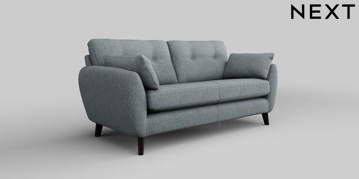 6.12.13 Buy Wilson Buttoned Back 3 Seater Small Sofa Chunky Weave Mid Blue Retro Tapered - Dark from the Next UK online shop Click here to use our accessible website