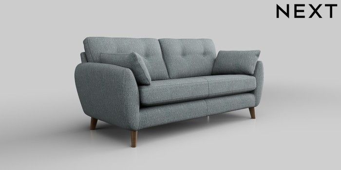 6.12.1 Buy Wilson Buttoned Back 3 Seater Small Sofa Chunky Weave Mid Blue Retro Tapered - Mid from the Next UK online shop Click here to use our accessible website