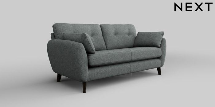 6.12.1 Buy Wilson Buttoned Back 3 Seater Small Sofa Chunky Weave Mid Grey Retro Tapered - Dark from the Next UK online shop Click here to use our accessible website