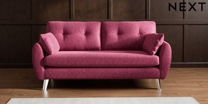 7.3.1 Buy Wilson Buttoned Back 3 Seater Small Sofa Cotswold Chenille Dark Raspberry Pink Metal Tapered - Chrome from the Next UK online shop Click here to use our accessible website