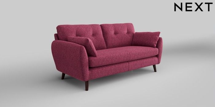 6.12.1 Buy Wilson Buttoned Back 3 Seater Small Sofa Cotswold Chenille Dark Raspberry Pink Retro Tapered - Dark Brown from the Next UK online shop Click here to use our accessible website