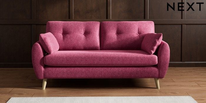 7.2.10 Buy Wilson Buttoned Back 3 Seater Small Sofa Cotswold Chenille Dark Raspberry Pink Retro Tapered - Light from the Next UK online shop Click here to use our accessible website