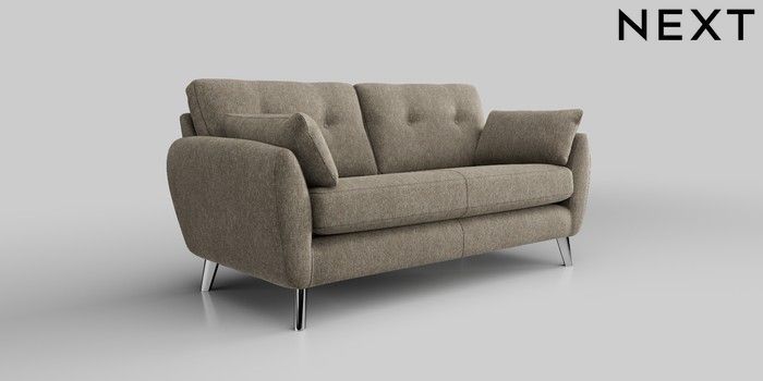 6.12.1 Buy Wilson Buttoned Back 3 Seater Small Sofa Cotswold Chenille Mid Mink Brown Metal Tapered - Chrome from the Next UK online shop Click here to use our accessible website