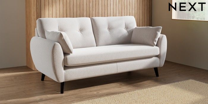7.3.1 Buy Wilson Buttoned Back 3 Seater Small Sofa Cotswold Chenille Oyster Retro Tapered - Dark from the Next UK online shop