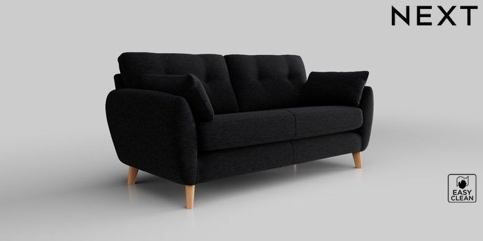 6.12.1 Buy Wilson Buttoned Back 3 Seater Small Sofa Fine Chenille Easy Clean Black Retro Tapered - Light from the Next UK online shop Click here to use our accessible website