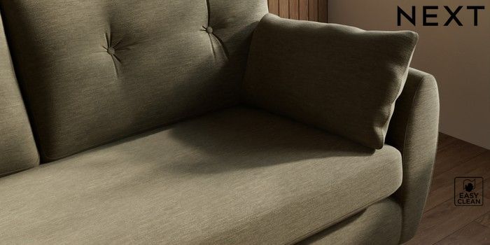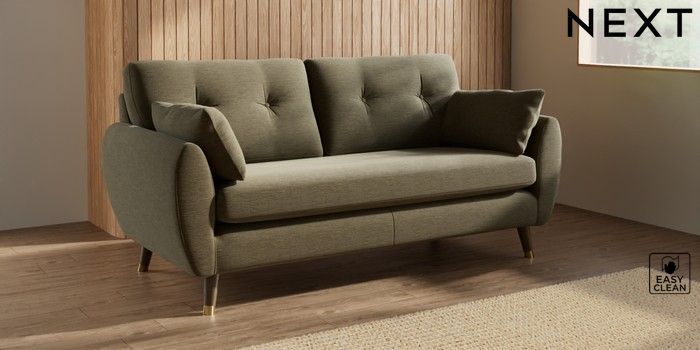 7.3.1 Buy Wilson Buttoned Back 3 Seater Small Sofa Fine Chenille Easy Clean Dark Moss Green Low Retro Tapered Metal Cap - Mid from the Next UK online shop Click here to use our accessible website