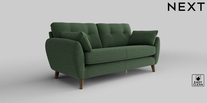 6.12.1 Buy Wilson Buttoned Back 3 Seater Small Sofa Fine Chenille Easy Clean Mid Khaki Green Retro Tapered - Mid from the Next UK online shop Click here to use our accessible website