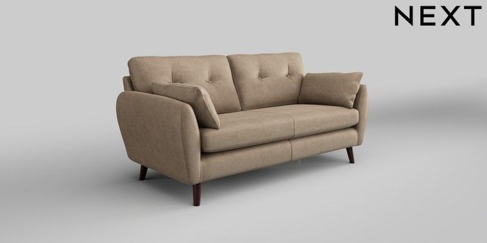 6.12.1 Buy Wilson Buttoned Back 3 Seater Small Sofa Luxe Chenille Mid Camel Beige Retro Tapered - Dark Brown from the Next UK online shop Click here to use our accessible website