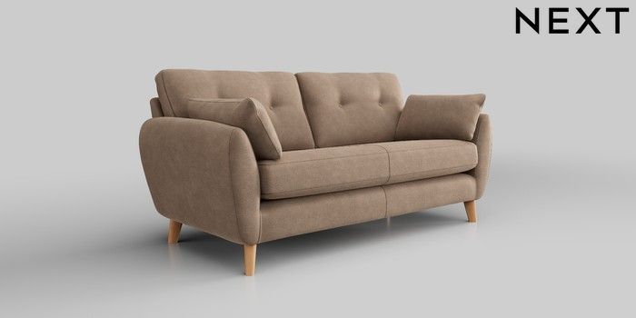 6.12.1 Buy Wilson Buttoned Back 3 Seater Small Sofa Luxe Chenille Mid Natural Retro Tapered - Light from the Next UK online shop Click here to use our accessible website