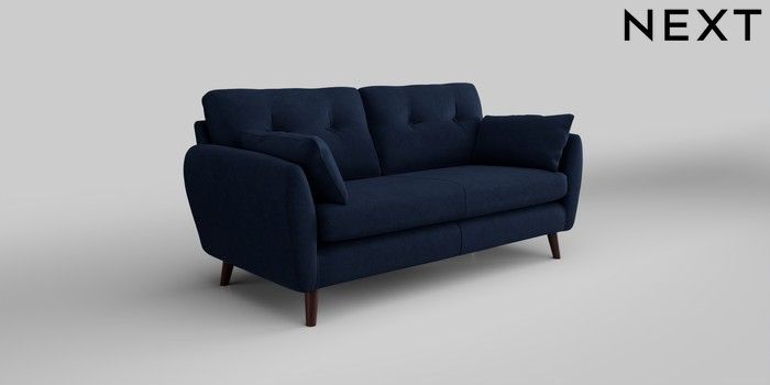 6.12.1 Buy Wilson Buttoned Back 3 Seater Small Sofa Luxe Chenille Navy Blue Retro Tapered - Dark Brown from the Next UK online shop Click here to use our accessible website