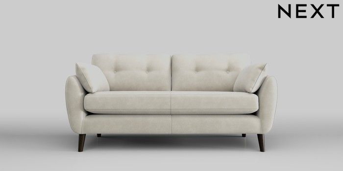 7.0.3 Buy Wilson Buttoned Back 3 Seater Small Sofa Luxe Chenille Oyster Retro Tapered - Dark from the Next UK online shop Click here to use our accessible website