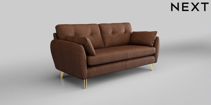 6.12.1 Buy Wilson Buttoned Back 3 Seater Small Sofa Monza Faux Leather Easy Clean Chestnut Brown Metal Tapered - Gold from the Next UK online shop Click here to use our accessible website