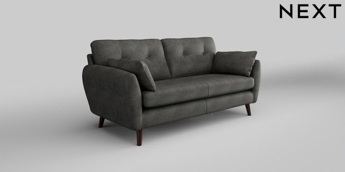 6.12.1 Buy Wilson Buttoned Back 3 Seater Small Sofa Monza Faux Leather Easy Clean Dark Grey Retro Tapered - Dark Brown from the Next UK online shop Click here to use our accessible website