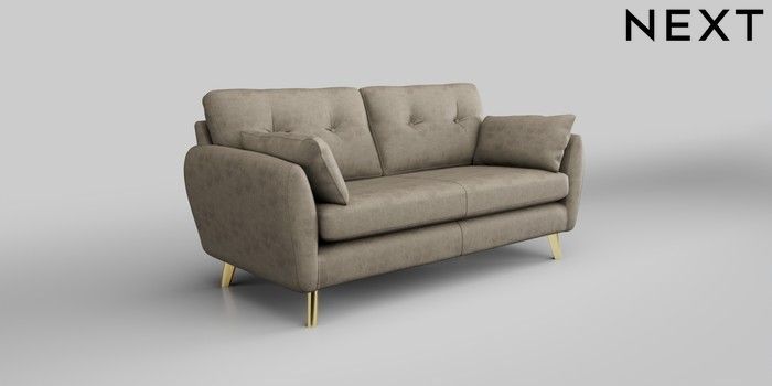 6.12.1 Buy Wilson Buttoned Back 3 Seater Small Sofa Monza Faux Leather Easy Clean Mink Brown Metal Tapered - Gold from the Next UK online shop Click here to use our accessible website