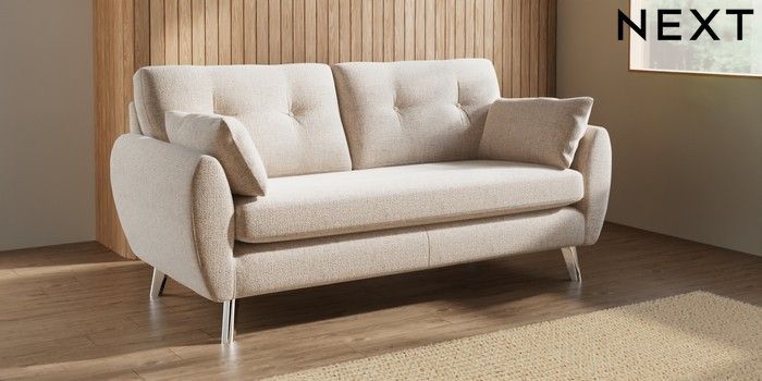 7.3.1 Buy Wilson Buttoned Back 3 Seater Small Sofa Multi Weave Mid Natural Metal Tapered - Chrome from the Next UK online shop