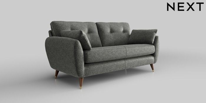 6.12.1 Buy Wilson Buttoned Back 3 Seater Small Sofa Plush Chenille Dark Grey Low Retro Tapered Metal Cap - Mid from the Next UK online shop Click here to use our accessible website