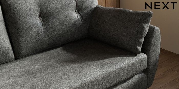 7.3.1 Buy Wilson Buttoned Back 3 Seater Small Sofa Plush Chenille Dark Grey Retro Tapered - Dark from the Next UK online shop