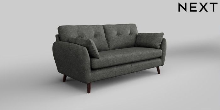 6.12.1 Buy Wilson Buttoned Back 3 Seater Small Sofa Plush Chenille Dark Grey Retro Tapered - Dark Brown from the Next UK online shop Click here to use our accessible website