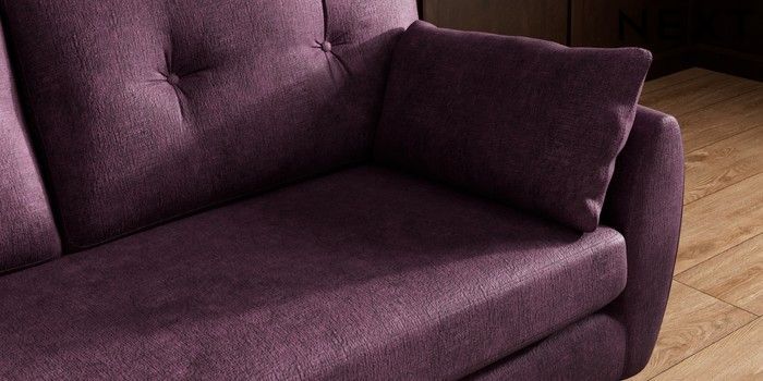 7.3.1 Buy Wilson Buttoned Back 3 Seater Small Sofa Plush Chenille Dark Plum Purple Low Retro Tapered Metal Cap - Mid from the Next UK online shop Click here to use our accessible website
