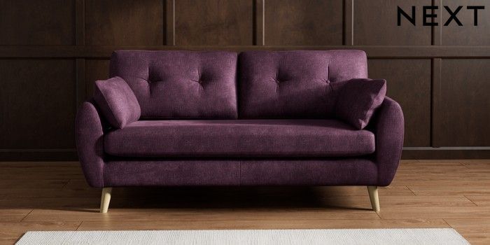 7.2.10 Buy Wilson Buttoned Back 3 Seater Small Sofa Plush Chenille Dark Plum Purple Retro Tapered - Light from the Next UK online shop Click here to use our accessible website
