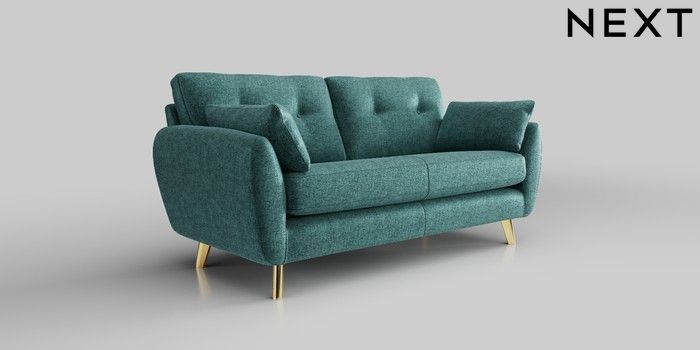 6.12.13 Buy Wilson Buttoned Back 3 Seater Small Sofa Plush Chenille Dark Teal Green Metal Tapered - Gold from the Next UK online shop Click here to use our accessible website