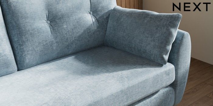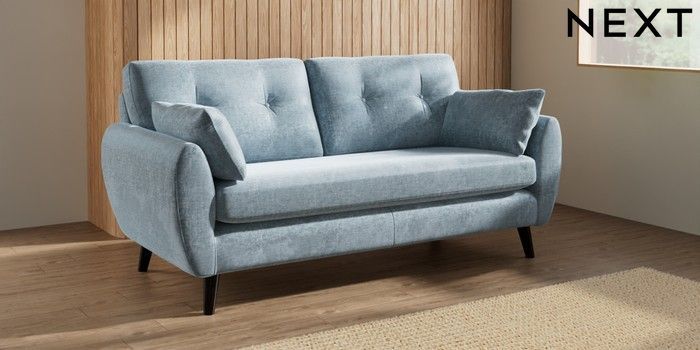 7.3.1 Buy Wilson Buttoned Back 3 Seater Small Sofa Plush Chenille Light Blue Retro Tapered - Dark from the Next UK online shop