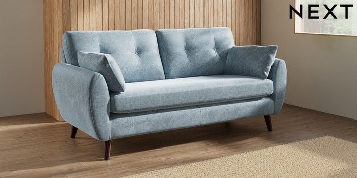 7.3.1 Buy Wilson Buttoned Back 3 Seater Small Sofa Plush Chenille Light Blue Retro Tapered - Dark Brown from the Next UK online shop