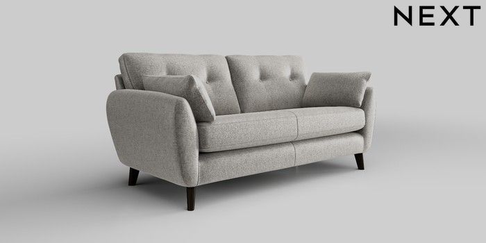 6.12.1 Buy Wilson Buttoned Back 3 Seater Small Sofa Plush Chenille Light Grey Retro Tapered - Dark from the Next UK online shop Click here to use our accessible website