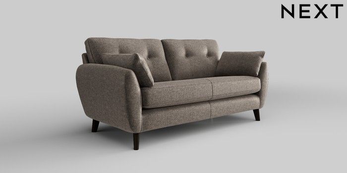 6.12.1 Buy Wilson Buttoned Back 3 Seater Small Sofa Plush Chenille Mink Brown Retro Tapered - Dark from the Next UK online shop Click here to use our accessible website