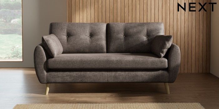 7.2.10 Buy Wilson Buttoned Back 3 Seater Small Sofa Plush Chenille Mink Brown Retro Tapered - Light from the Next UK online shop Click here to use our accessible website