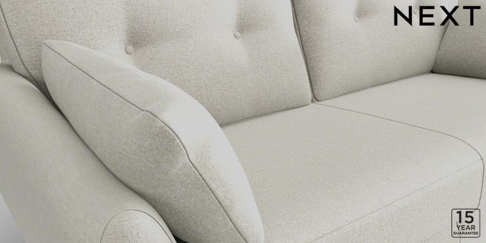 6.11.4 Buy Wilson Buttoned Back 3 Seater Small Sofa Plush Chenille Oyster Metal Tapered - Chrome from the Next UK online shop Click here to use our accessible website