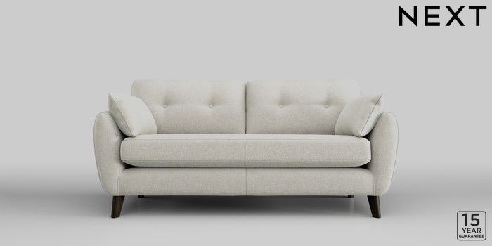6.10.9 Buy Wilson Buttoned Back 3 Seater Small Sofa Plush Chenille Oyster Retro Tapered - Dark from the Next UK online shop Click here to use our accessible website