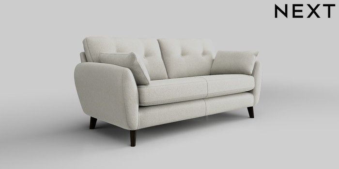 6.12.1 Buy Wilson Buttoned Back 3 Seater Small Sofa Plush Chenille Oyster Retro Tapered - Dark from the Next UK online shop Click here to use our accessible website