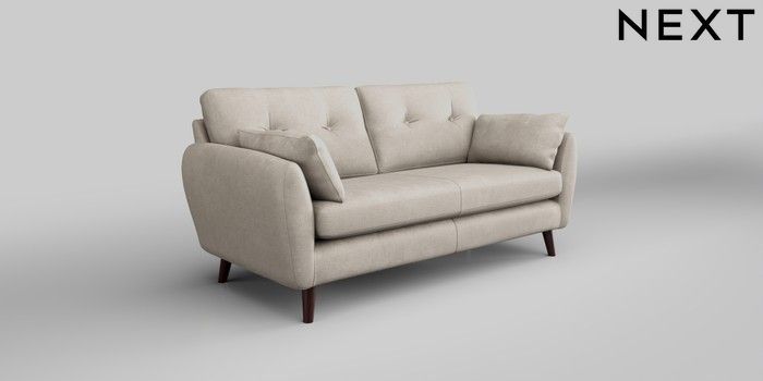 6.12.1 Buy Wilson Buttoned Back 3 Seater Small Sofa Plush Chenille Oyster Retro Tapered - Dark Brown from the Next UK online shop Click here to use our accessible website